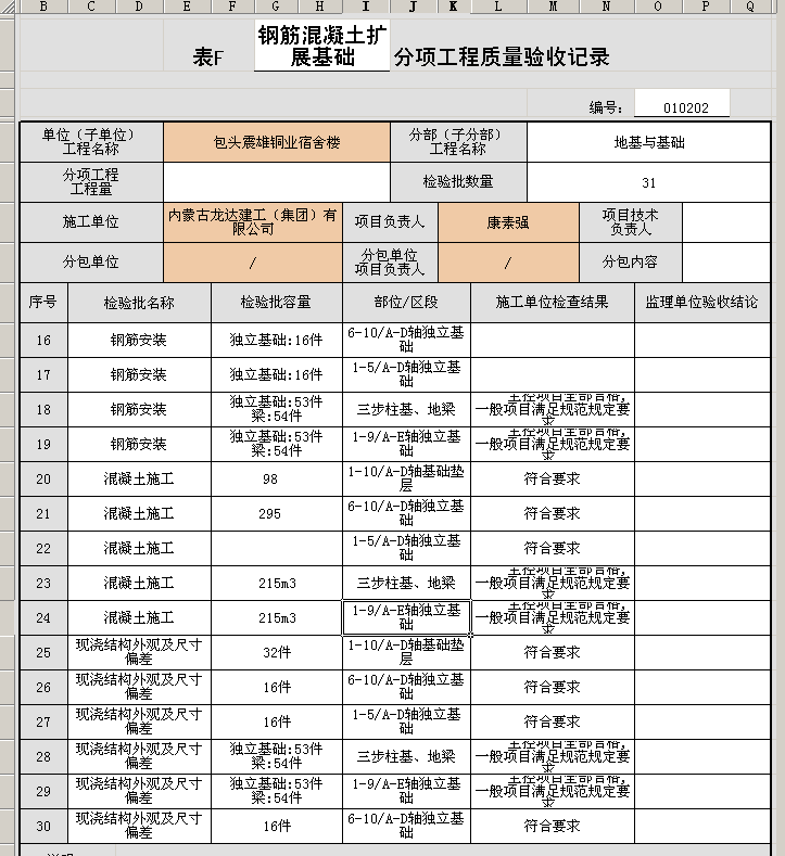 比如:模板分項,包括模板安裝和模板拆除,分項工程量可以寫:所有模板安裝檢驗批容量相加之和