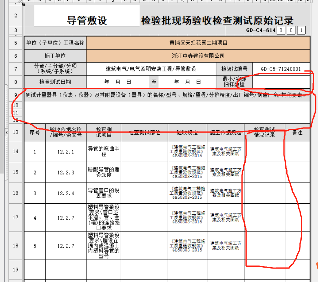 最小/實(shí)際抽樣數(shù)量根據(jù)檢驗(yàn)批質(zhì)量驗(yàn)收記錄填寫,測(cè)試計(jì)量器具,可查看相關(guān)驗(yàn)收項(xiàng)目的檢查方法,檢查方法內(nèi)會(huì)提及如何檢查,如果用到器具也會(huì)在檢查方法內(nèi)注明,檢查測(cè)試情況記錄填寫是否符合規(guī)范要求即可。
