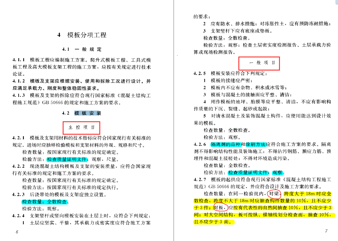 這個需要根據(jù)現(xiàn)場實際情況填,可以問現(xiàn)場技術(shù)負責(zé)人或者專業(yè)工長。檢驗批中的主控一般項目都是根據(jù)檢驗批的驗收依據(jù)中的驗收規(guī)范填寫的,可以查看相關(guān)驗收規(guī)范,如模板安裝,見下圖: