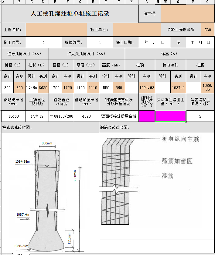 施測是指的施工后樁孔的體積,先算出鍋底的體積+上樁孔的體積得出整個體積量,實際澆筑混凝土的量差不多就是這個孔的體積乘以1.2-1.5的系數(shù)就是整個樁的澆筑量