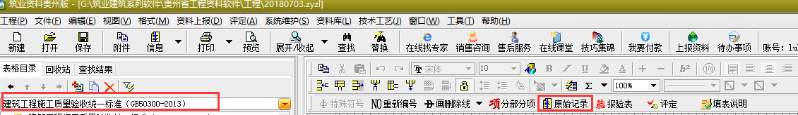 看框起來的原始記錄,做完當前的檢驗批以后,單擊一下原始記錄就行了