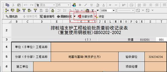 新建完檢驗(yàn)批表格后點(diǎn)表格上方的“分部分項(xiàng)”按鈕(檢驗(yàn)批表格上方),就可以自動(dòng)匯總生成分部分項(xiàng)了。