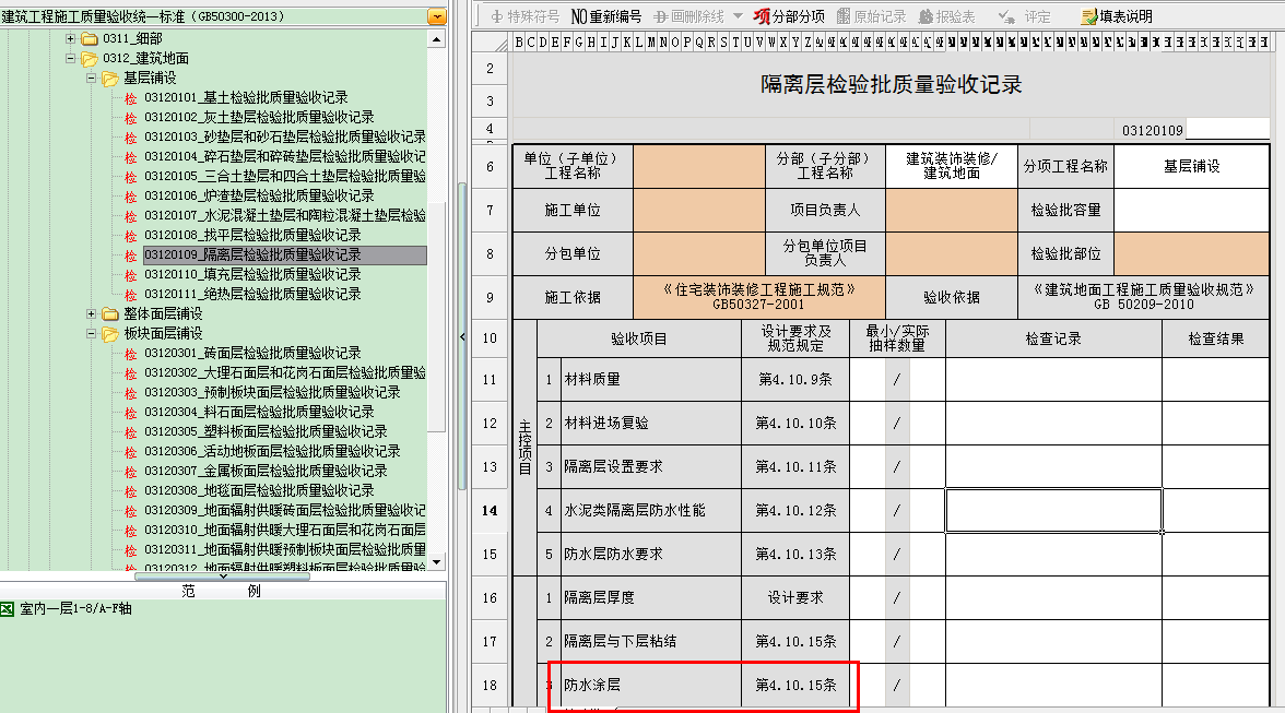 您好!衛(wèi)生間防水層的檢查項目在隔離層的檢驗批里
