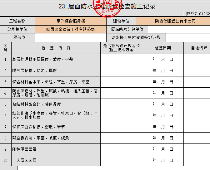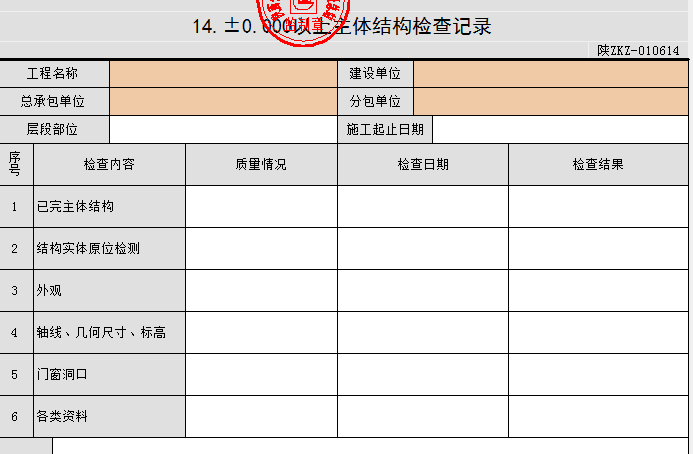 檢查日期可以按檢驗批或者試驗報告上實際的檢測日期填寫,表尾的簽字時間可以以上面檢查時間最后的時間為準,已完主體結(jié)構(gòu)的意思,如果現(xiàn)場是一棟33層的高層,中間會出現(xiàn)階段性驗收,假設規(guī)定10層驗一次,那么已完主體結(jié)構(gòu)就是1-10層