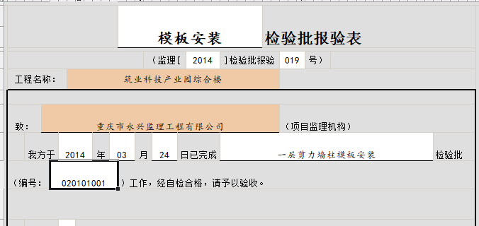 填寫對應(yīng)部位檢驗右上角的檢驗批編號即可