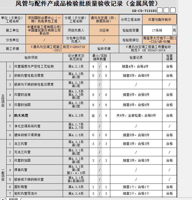 建議打開填表說明對(duì)照填表說面看,通風(fēng)與空調(diào)有專門的抽樣方案數(shù)值是通過抽樣方案的要求生成的