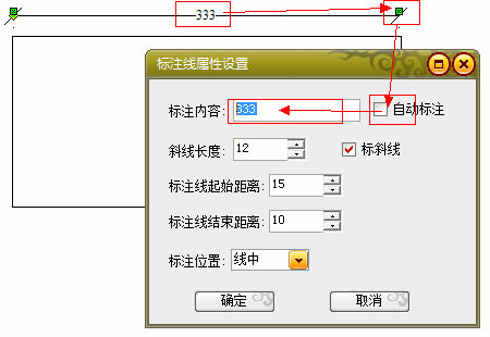 如圖把標(biāo)尺畫好后選中它,然后把鼠標(biāo)放綠色放框處雙擊,彈出“標(biāo)注線屬性設(shè)置”