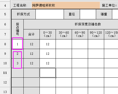 地基釬探記錄中探點編號填寫不了,單元格鎖定解鎖了還是填寫不了