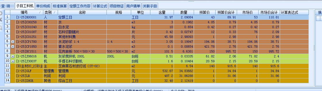 各地定額材料費中是不包含主材費的,如果確定子目工料機中沒有主材,還想顯示的話,需要補充一個