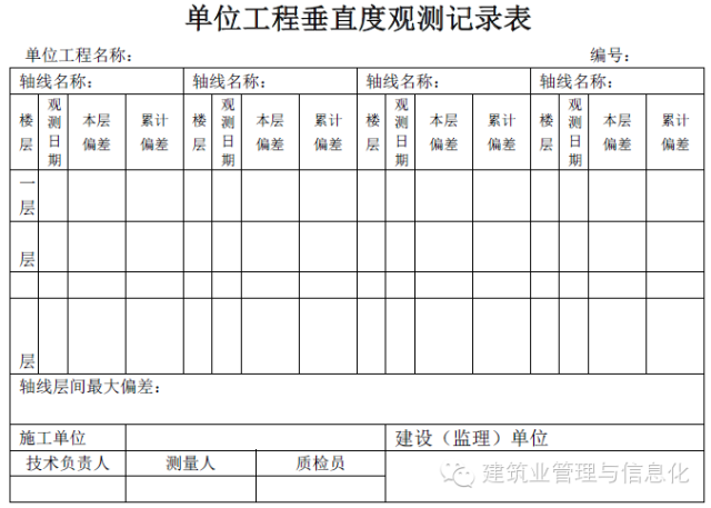單位工程垂直度觀測(cè)記錄