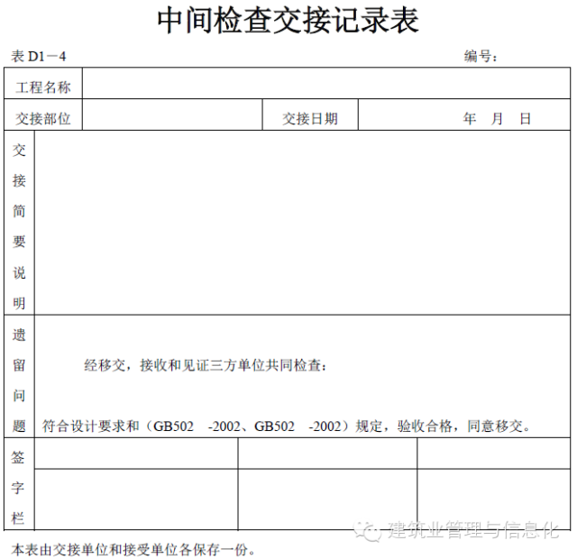中間檢查交接記錄表