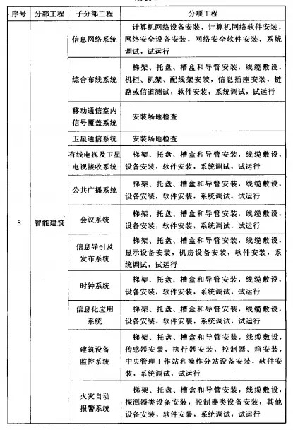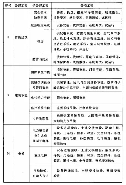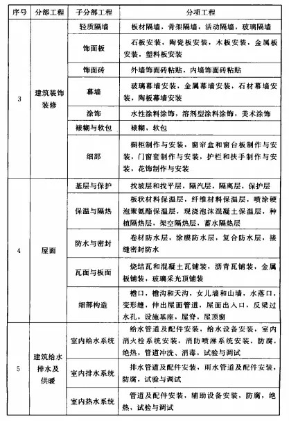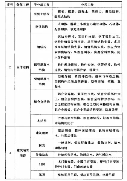 分部分項(xiàng)工程 共劃分為:一、地基與基礎(chǔ)工程;二、主體結(jié)構(gòu);三、建筑裝飾裝修;四、建筑屋面;五、建筑給水、排水及采暖;六、建筑電氣;七、智能建筑;八、通風(fēng)與空調(diào);九、電梯;十、建筑節(jié)能