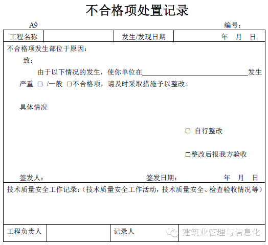 不合格項(xiàng)處置記錄