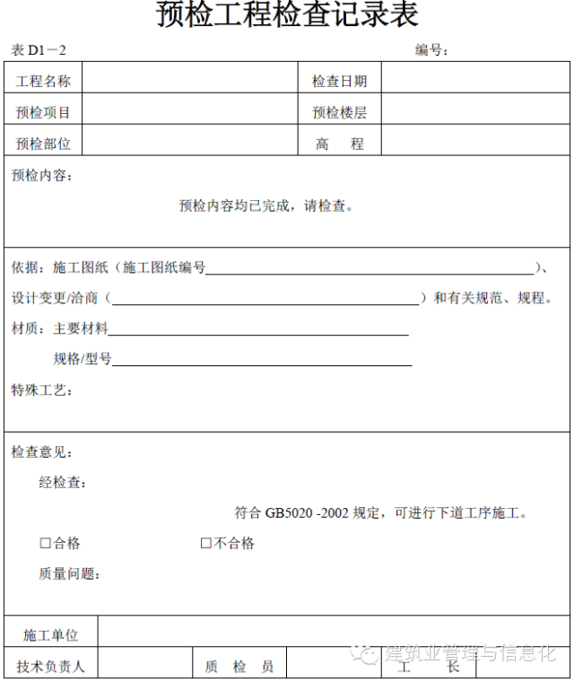 預(yù)檢工程記錄表