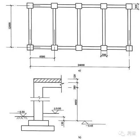 1.按圖所示,計算柱腳手架及梁腳手架工程量及總工程量。