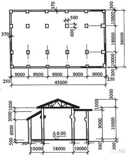 中跨建筑面積=(45.0+0.5)×(18+0.6)m2=846.30m2