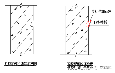 施工縫或后澆縫事,未經(jīng)接縫處理,將表面水泥漿膜和松動(dòng)石子清除掉,或未漿軟弱混凝土層及雜物清除,并充分濕潤(rùn),就繼續(xù)澆筑混凝土。
