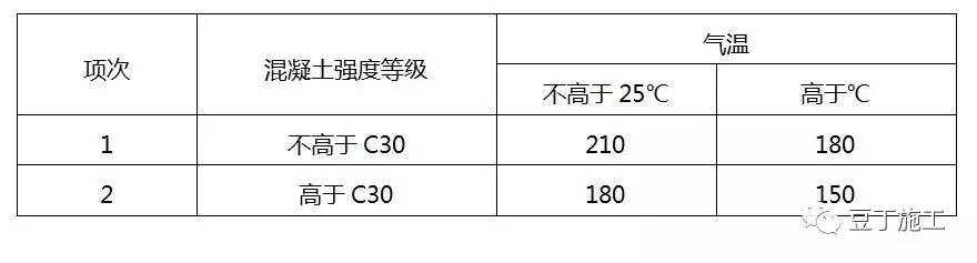 注:當(dāng)混凝土中接有促凝或緩凝型外加劑時(shí),其允許時(shí)間應(yīng)根據(jù)試驗(yàn)結(jié)果確定。