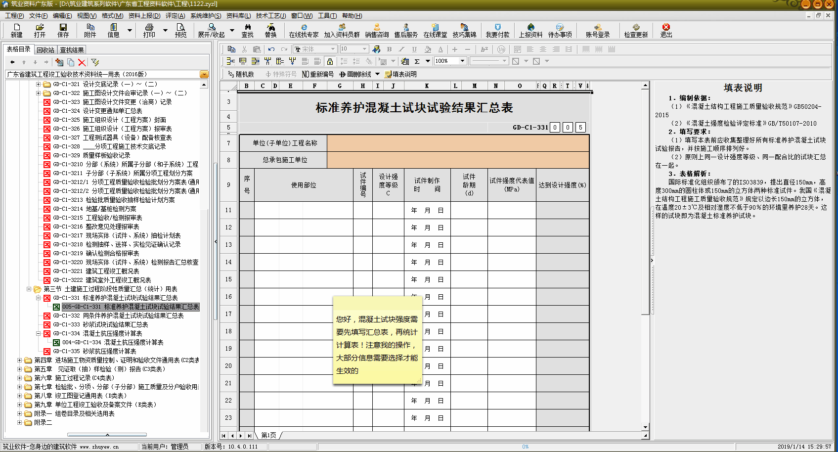 廣東標(biāo)準(zhǔn)版軟件混凝土匯總計(jì)算表格怎么填寫